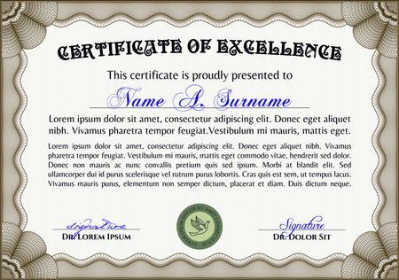 Vector certificate with sample and outlined text. Very complex border design