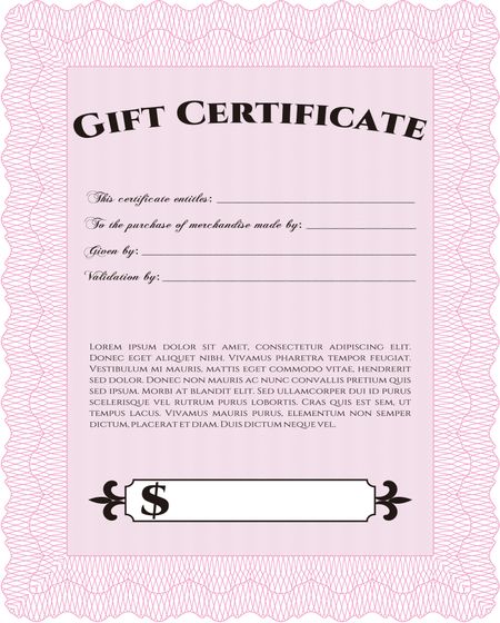 Vector Gift Certificate. Good design. With complex background. Customizable, Easy to edit and change colors.