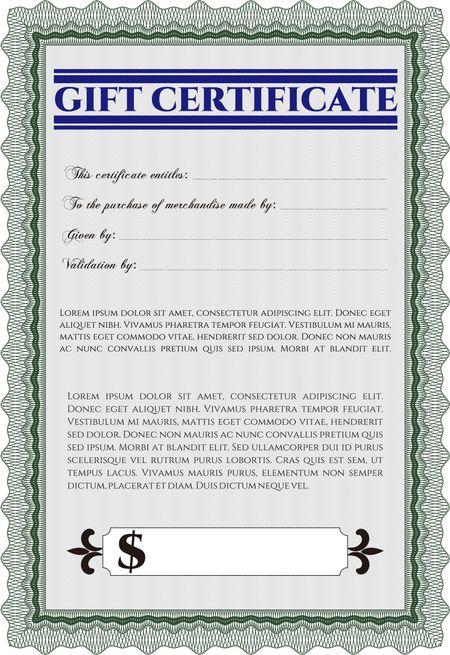 Vector Gift Certificate. With guilloche pattern. Detailed.Good design.