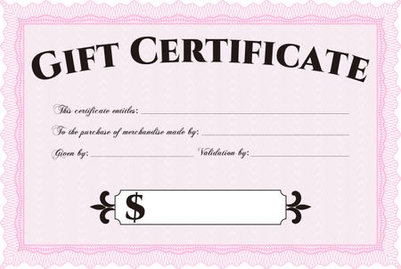 Vector Gift Certificate template. Border, frame.Cordial design. With background.