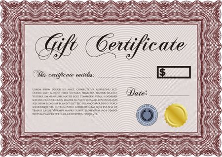 Vector Gift Certificate template. With complex linear background. Excellent complex design. Vector illustration.