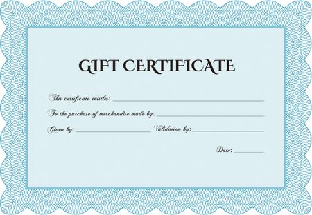 Vector Gift Certificate template. Excellent complex design. With guilloche pattern and background. Vector illustration.