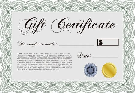 Vector Gift Certificate template. With guilloche pattern and background. Vector illustration.Superior design.