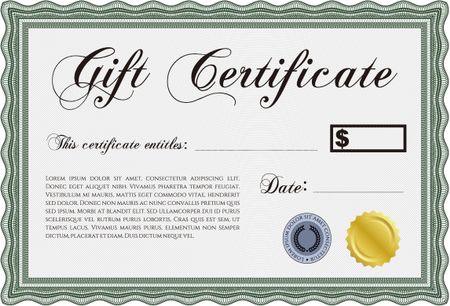 Vector Gift Certificate template. Vector illustration. Excellent complex design. With guilloche pattern and background.