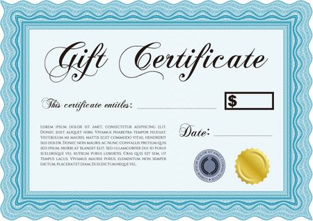Vector Gift Certificate template. Vector illustration. With guilloche pattern and background. Elegant design.