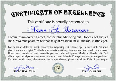 Vector illustration of certificate, diploma or coupon. Very complex design.