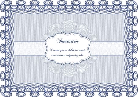 Vintage invitation. Artistry design. With guilloche pattern and background. Vector illustration.
