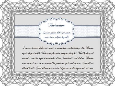 Vintage invitation. Excellent complex design. With guilloche pattern and background. Vector illustration.