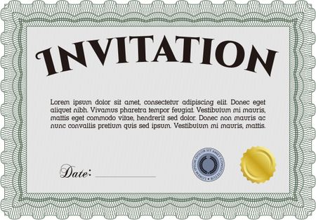 Vintage invitation. With great quality guilloche pattern. Artistry design. Vector illustration.