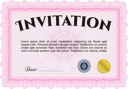 Vintage invitation template. Elegant design. With guilloche pattern. Vector illustration.