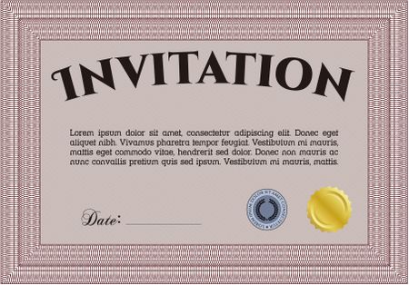 Vintage invitation. Vector illustration. With guilloche pattern and background. Excellent complex design.