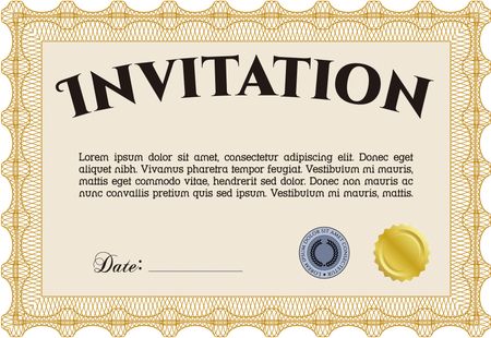 Vintage invitation. Vector illustration. With guilloche pattern and background. Excellent complex design.