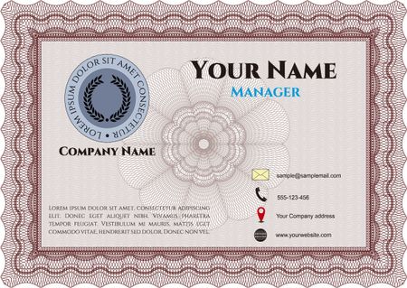 Vintage Style Business card. Border, frame.Excellent complex design. With complex linear background.