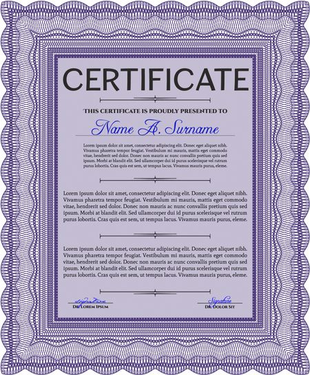 Violet Certificate. Detailed. Printer friendly. Complex design.