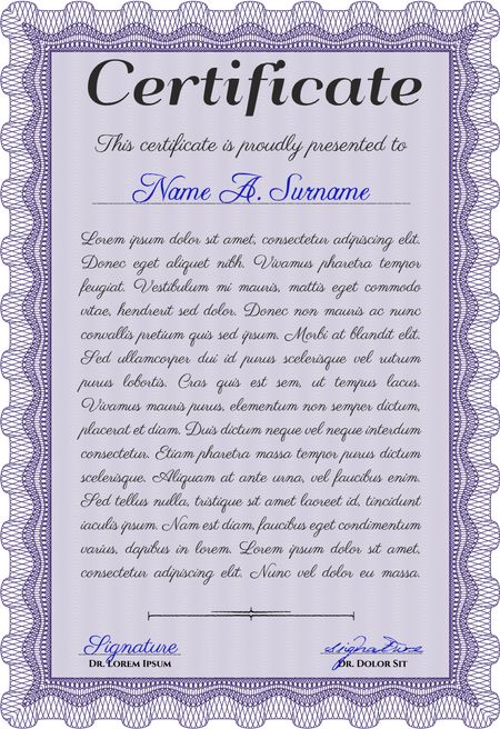 Violet Certificate. Printer friendly. Complex design. Detailed.