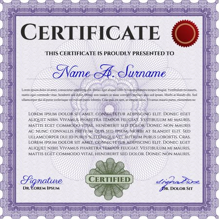 Violet Certificate template or diploma template. Complex background. Vector pattern that is used in currency and diplomas.Superior design.