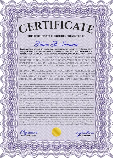Violet Diploma or certificate template. Vector pattern that is used in currency and diplomas.Superior design. Complex background.