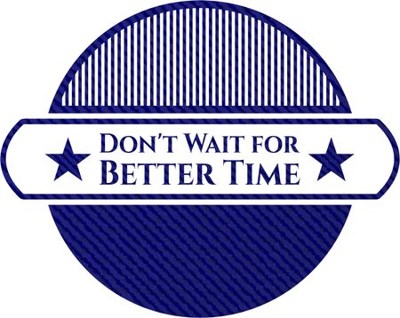Don't Wait for Better Time emblem with jean background