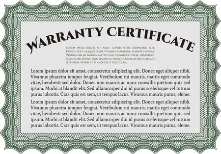 Warranty Certificate. With complex background. Complex border design. Very Detailed.