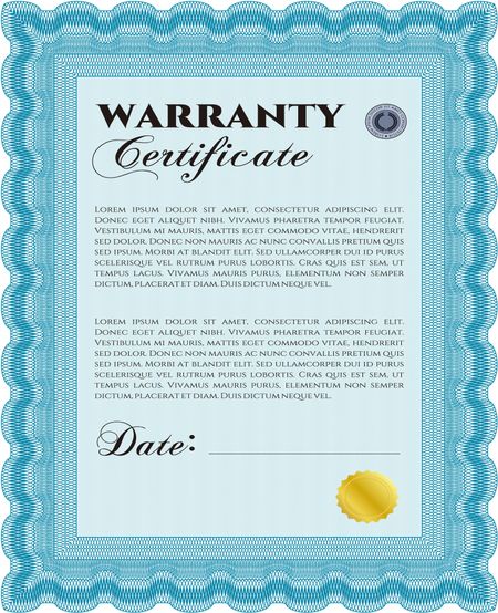 Warranty Certificate. Complex design. Detailed. Printer friendly.