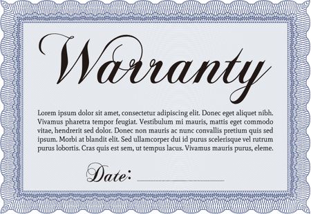 Warranty Certificate. Complex frame. Very Detailed. With sample text.