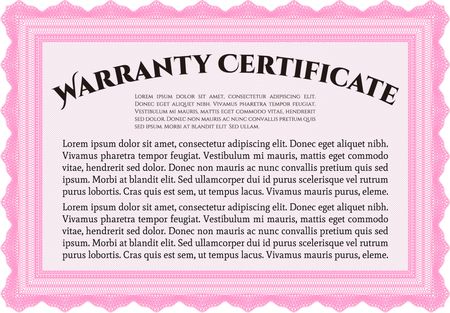 Warranty Certificate. Printer friendly. Complex design. Detailed.