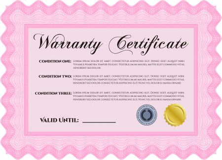 Warranty Certificate. Printer friendly. Complex design. Detailed.