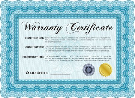 Warranty Certificate template. Complex frame design. Easy to print. Perfect style.