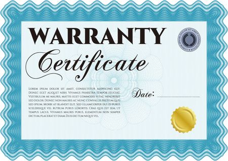 Warranty Certificate template. Complex frame design. Easy to print. Perfect style.