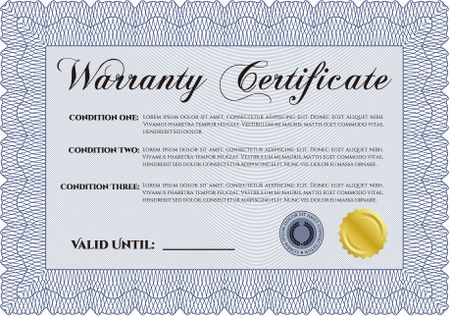 Warranty Certificate template. Complex frame design. Easy to print. Perfect style.