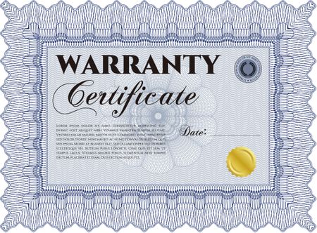 Warranty Certificate template. Complex frame design. Retro design. With sample text.