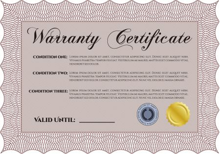 Warranty Certificate template. Complex frame. It includes background. Very Customizable.