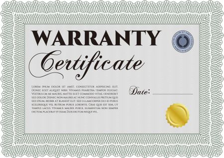 Warranty Certificate template. Easy to print. Complex border. Retro design.