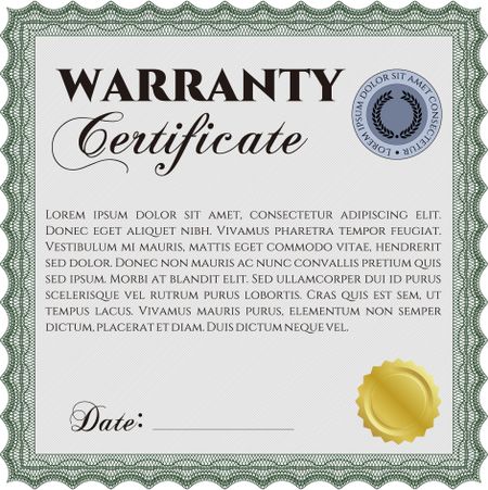 Warranty Certificate template. Easy to print. Nice design. Detailed.