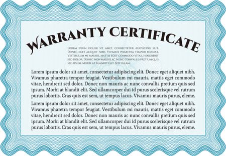 Warranty Certificate template. Vector illustration. With sample text. Complex frame design.