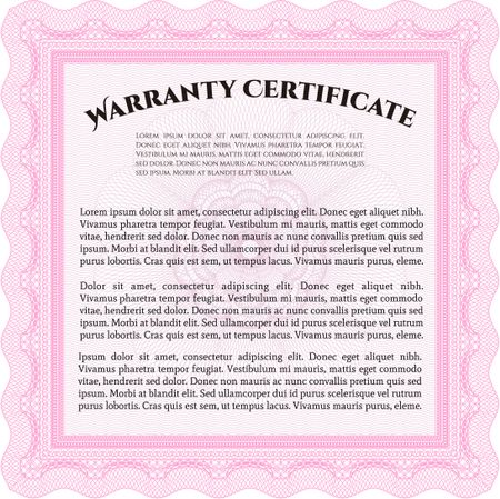 Warranty Certificate template. Very Detailed. With sample text. With background.