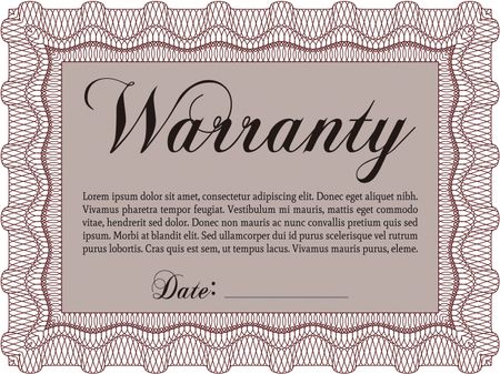 Warranty template. Excellent design. With complex background. Customizable, Easy to edit and change colors.
