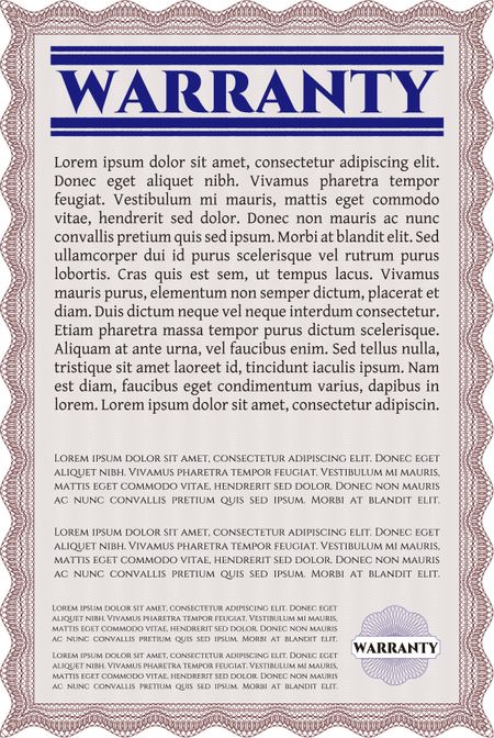 Warranty template or warranty certificate.