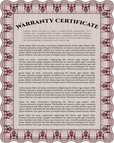 Warranty template or warranty certificate.