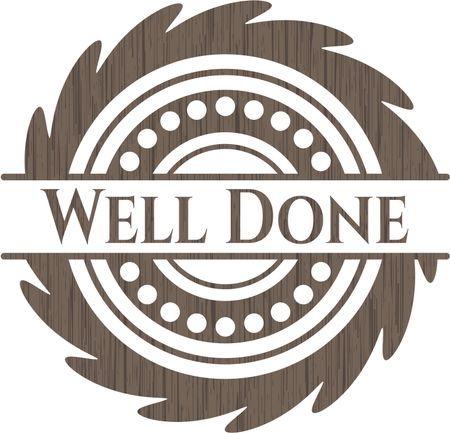 Well Done retro style wooden emblem