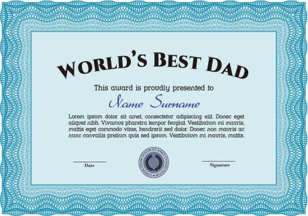 World's Best Dad Award. Complex design. Detailed. Printer friendly.