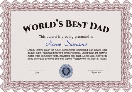 World's Best Dad Award. Complex design. Printer friendly. Detailed.