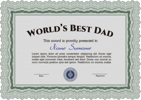 World's Best Dad Award. Detailed. Complex design. Printer friendly.