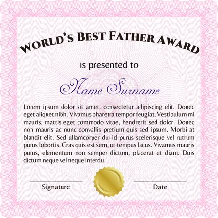 World's Best Dad Award. Printer friendly. Detailed. Complex design.
