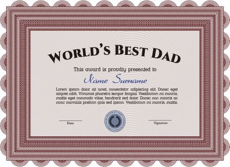 World's Best Dad Award. Superior design. Vector illustration.With guilloche pattern and background.
