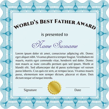 World's Best Dad Award Template. Complex background. Detailed.Nice design.