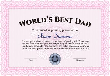 World's Best Dad Award Template. Cordial design. Border, frame.With linear background.