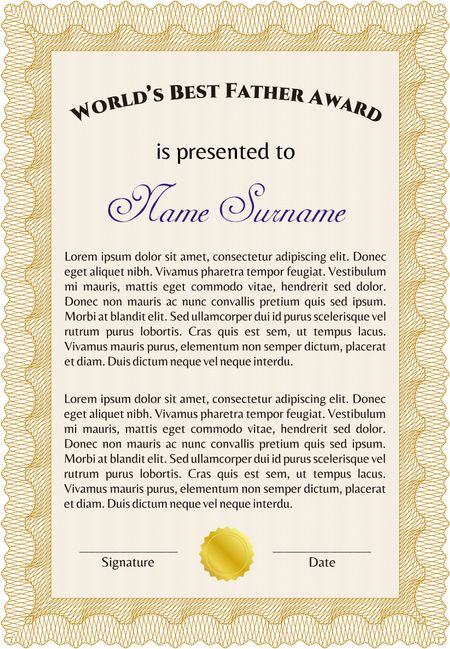 World's Best Dad Award Template. Excellent design. Customizable, Easy to edit and change colors. With complex background.