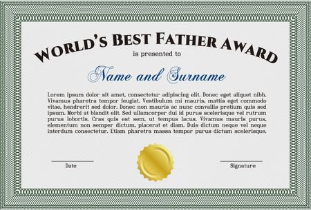 World's Best Dad Award. Vector illustration.With great quality guilloche pattern. Superior design.