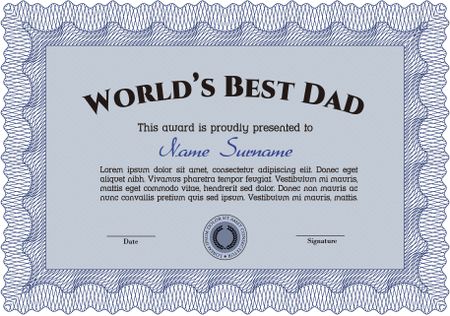World's Best Father Award. With background. Artistry design. Border, frame.